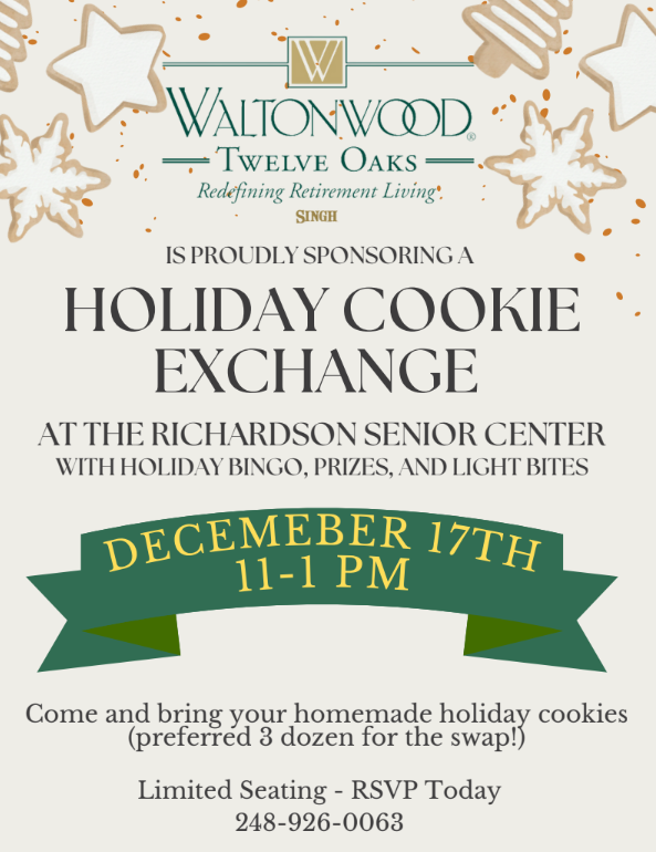 In the event of inclement weather conditions, the Richardson Senior Center may be closed. If the school district in which the Senior Center is located (Walled Lake) closes, the Senior Center will likewise close.