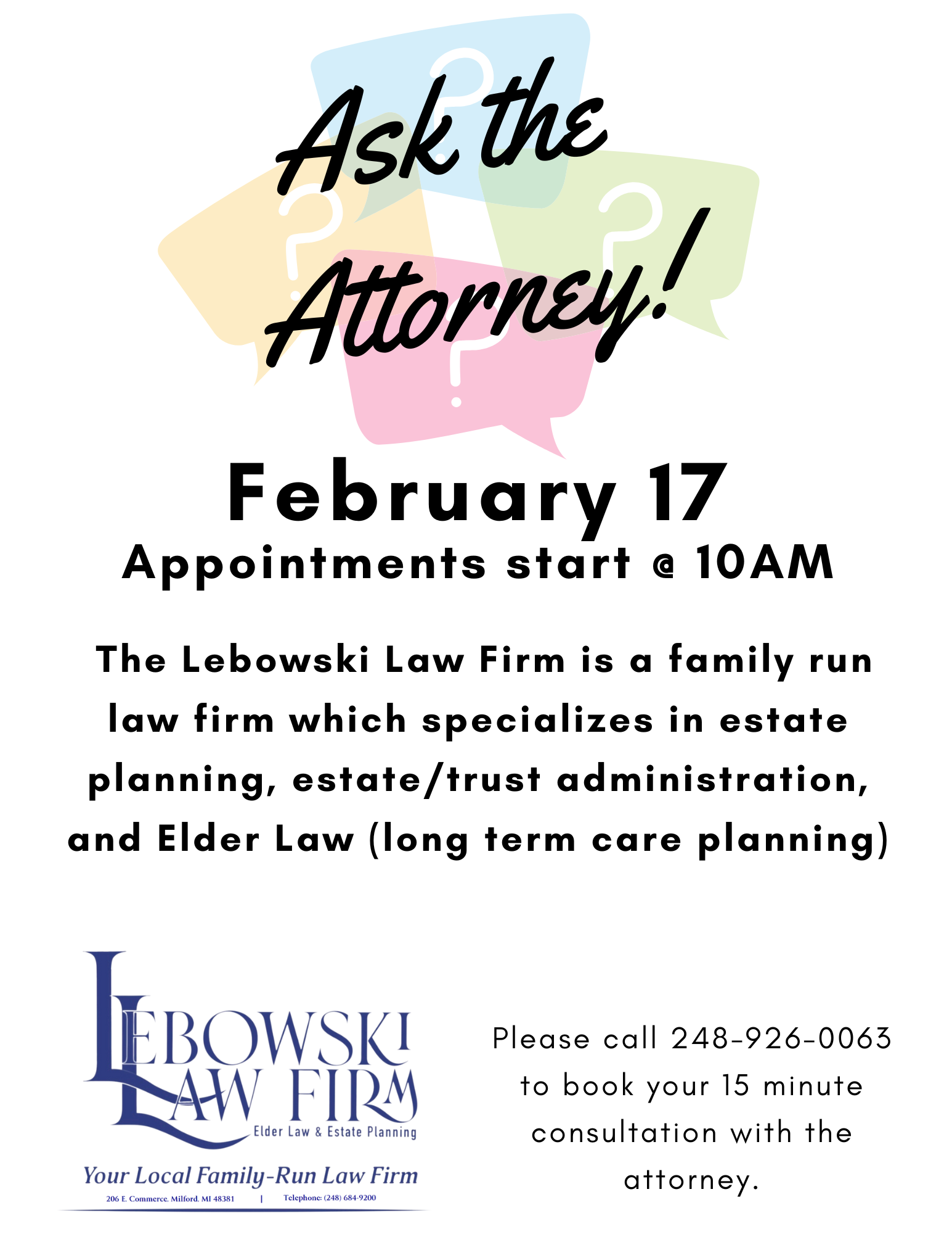 - - All special events require advance registration. Please call the Senior Center at 248-926-0063