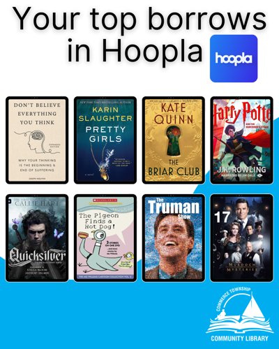 You downloaded or streamed 24,968 items from Hoopla Digital! Your top checkouts from Hoopla were: